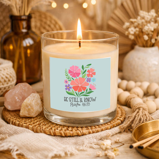 Be Still and Know Candle 12.5oz, Psalm 46:10 Christian Candle, Floral Faith Gift, Inspirational Religious Gift for Women