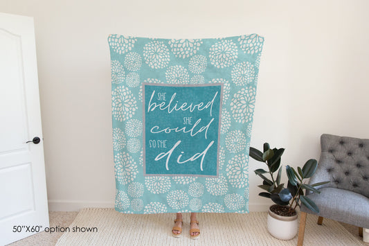 She Believed She Could So She Did Pink Quatrefoil Blanket