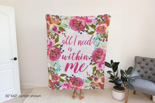 All I Need Is Within Me Inspirational Blanket | Uplifting Positive Affirmation Gift for Women, Cancer Patients, and Get Well Soon Comfort