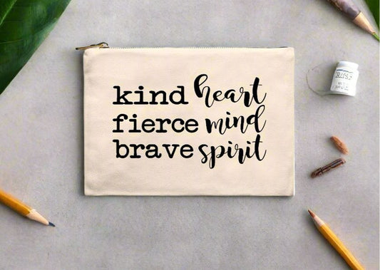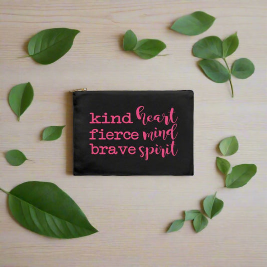 Kind Heart Fierce Mind Brave Spirit Cosmetic Bag - Black