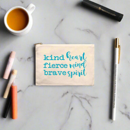 Kind Heart Fierce Mind Brave Spirit Cosmetic Bag - Blue
