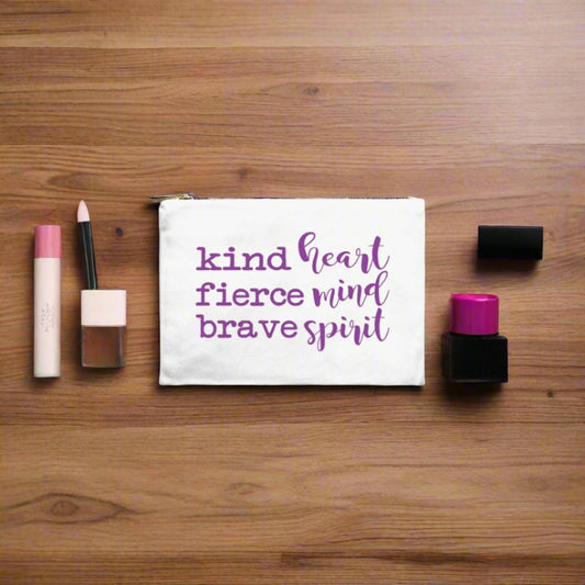 Kind Heart Fierce Mind Brave Spirit Cosmetic Bag - Purple